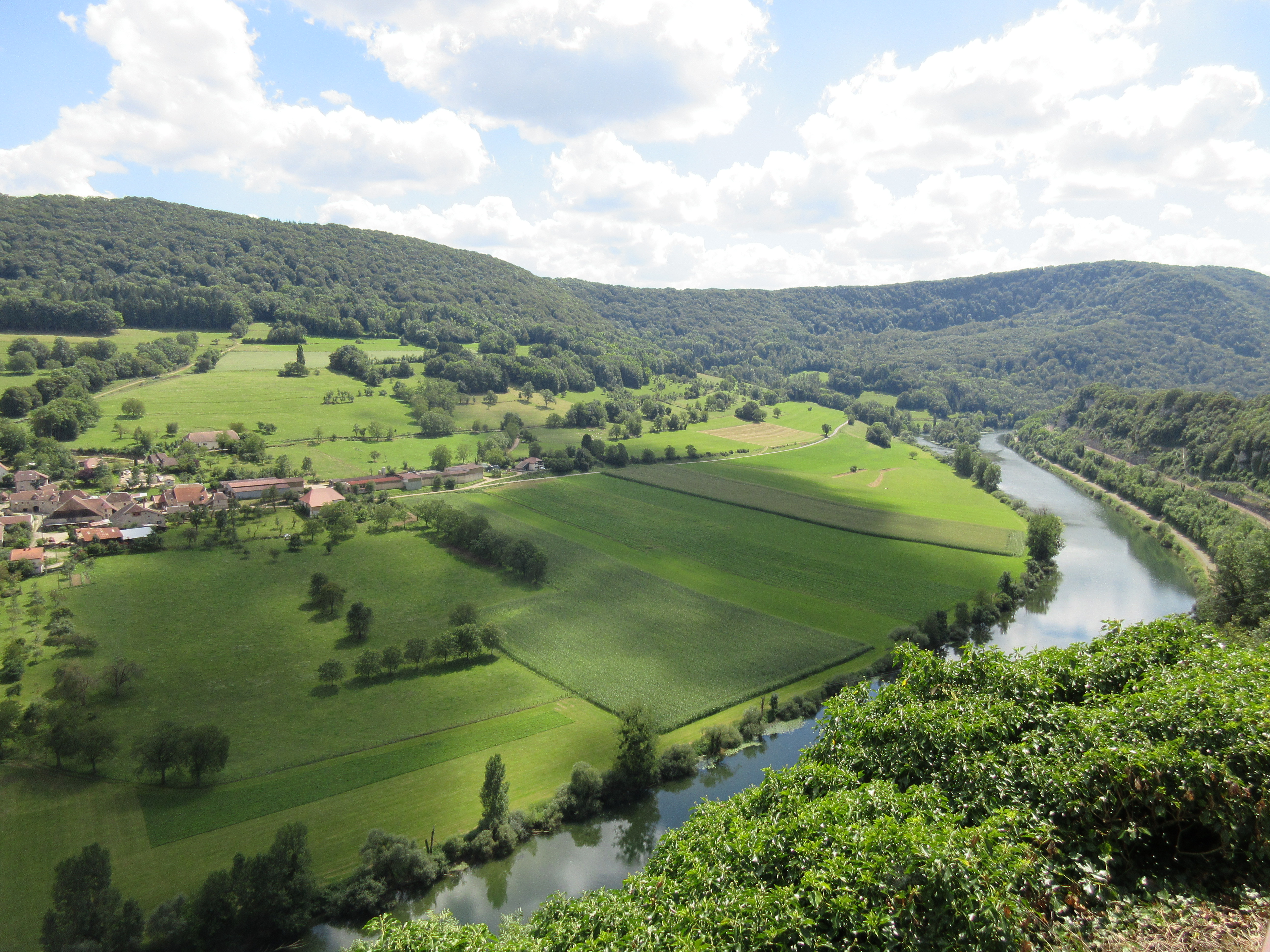La Vallée du Doubs et le village d'Esnans, vu depuis le belvédère du Saut de la Gamache (Fourbanne)