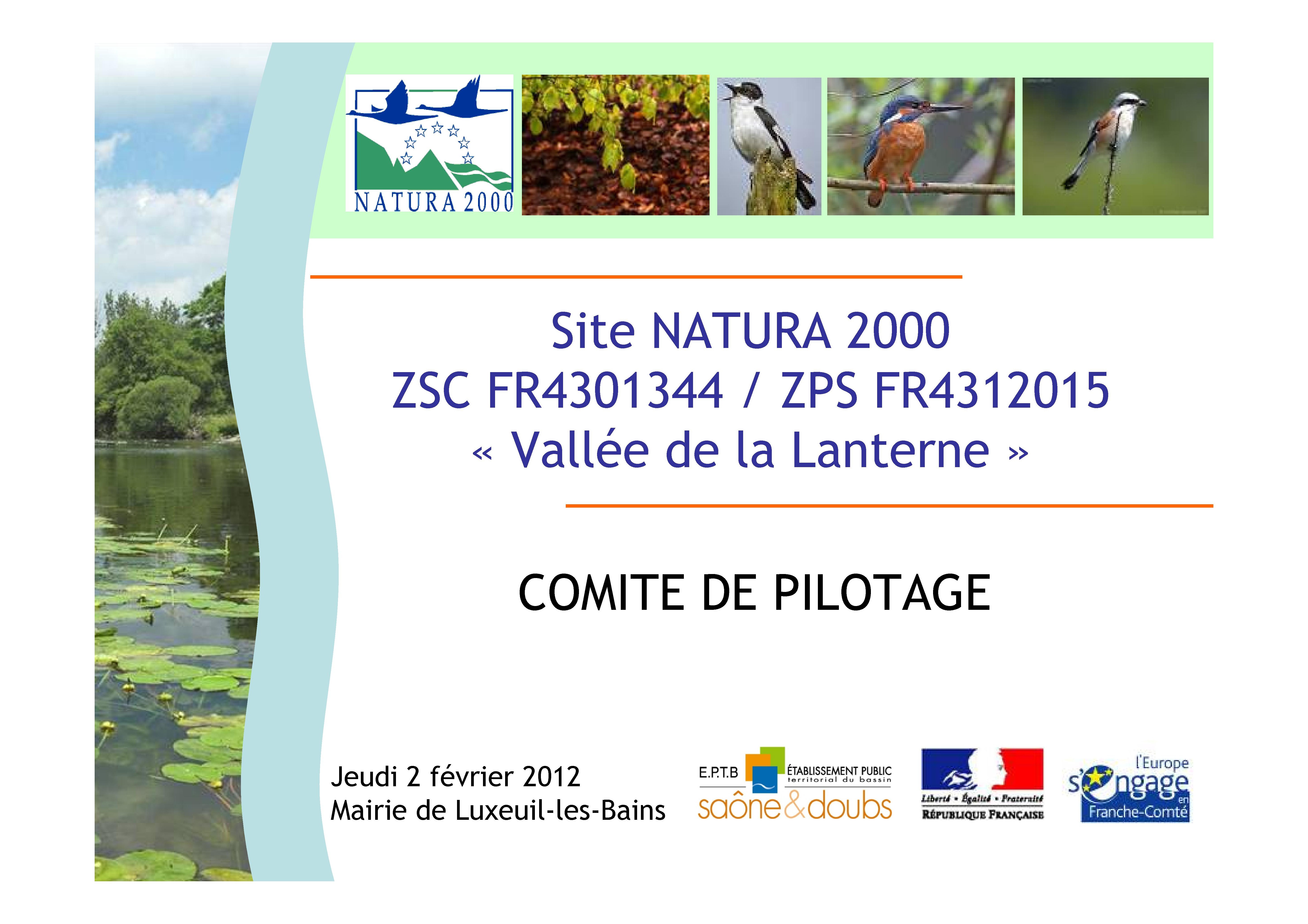 Sur l'invitation du Préfet de la Haute-Saône, le Comité de pilotage (COPIL) du site Natura 2000 de la Vallée de la Lanterne, nouvellement constitué, c'est réunit le 21 mars 2007 à la préfecture. Il a élu Madame HAGEMANN en tant que Présidente du COPIL et a choisi l'EPTB Saône et Doubs comme structure opératrice.